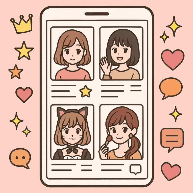 - キャラ適合:自分の性格・話し方・趣味に沿って、清楚/妹系/お姉さん/オタク女子/癒やし系…など**“なりたい自分”ではなく“続けられる自分”**のキャラクターを選ぶこと。